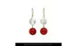 Boucles d'oreille composée avec belle corail rouge et perle d'eau douce blanc en forme de disque.